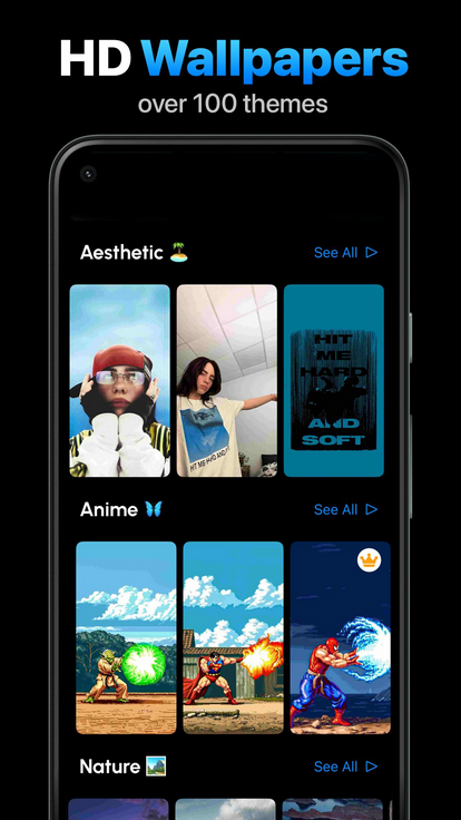 РазнообразиеВсе обои удобно распределены по соответствующим категориям. К примеру, здесь вы найдете варианты, выполненные в пастельных тонах, минималистичные обои, тематику фэнтези, абстракцию, живописные пейзажи и многое другое. В арсенале приложения насчитывается более 5000 обоев на любой вкус!