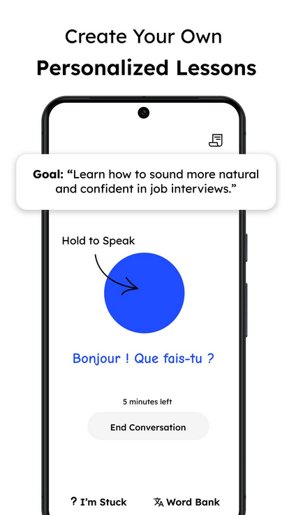 Благодаря инновационной системе обучения и упору на практику, пользователь сможет выучить иностранный язык в 5 раз быстрее, общаясь с ИИ, вне зависимости от знаний и уровня подготовки. Приготовьтесь влиться в процесс с первого дня.