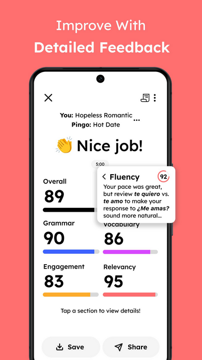СоветыPingo AI, помимо предоставления учебного материала, анализирует результат каждого вашего действия и готовит полезные советы по улучшению грамматики, которые позволят избежать ошибок в будущем. Мод на Premium значительно расширит возможности, открыв доступ ко всем функциям приложения. Обратная связь будет подробной и полезной.